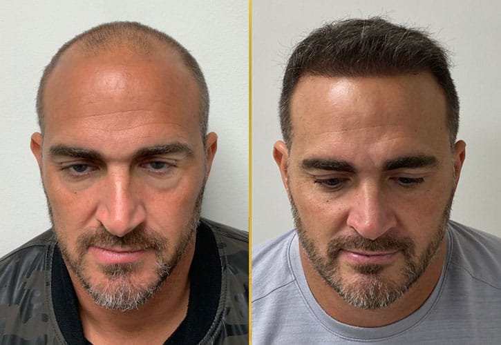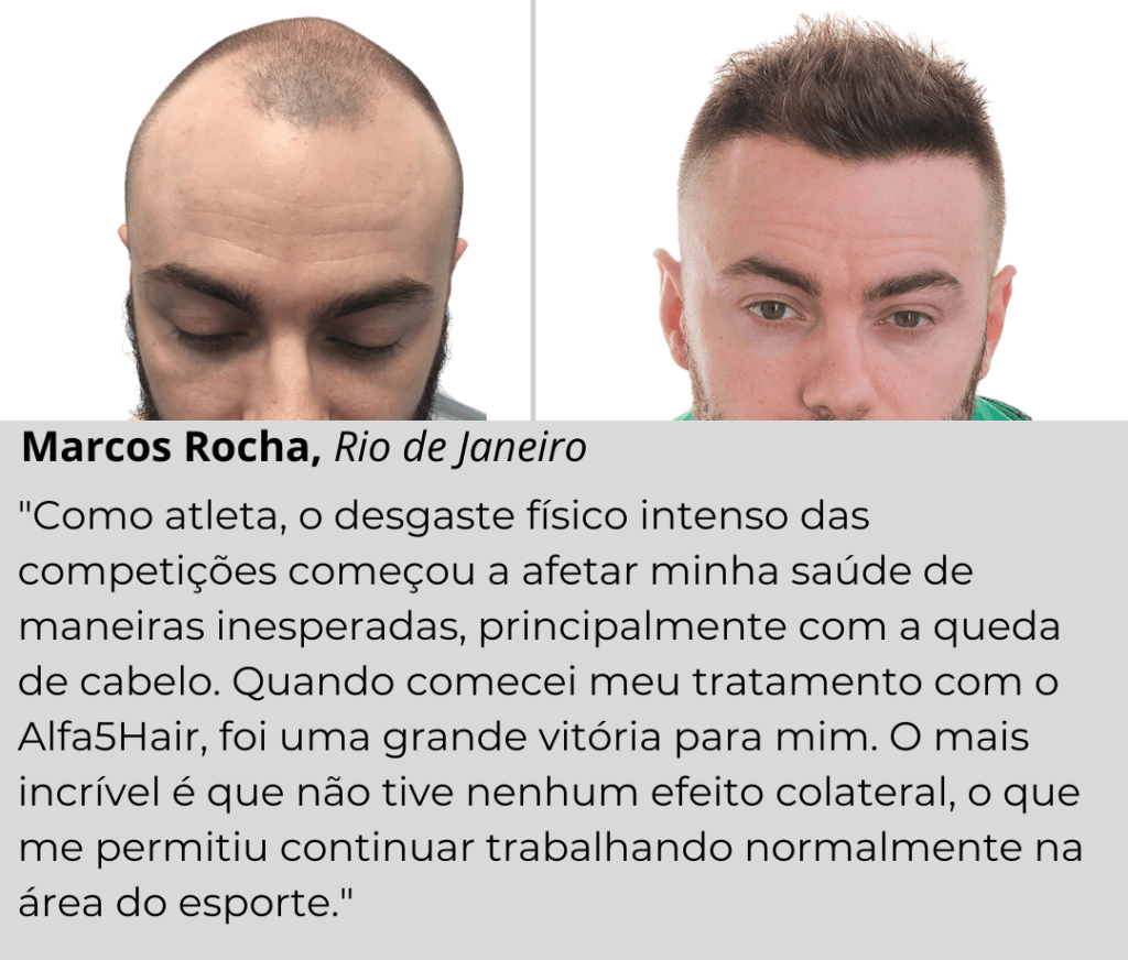 "Eu tenho 42 anos, e as pessoas achavam que eu tinha 60! Depois que comecei a perder cabelo, minha autoestima despencou. Ver meu couro cabeludo ficando cada vez mais visível foi devastador... só quem passa por isso sabe o que é ter a confiança no FUNDO DO POÇO! Eu me sentia arrasado toda vez que me olhava no espelho, vendo meu cabelo fino e as falhas aumentarem. Cada foto com a família era uma HUMILHAÇÃO." – Mario Gonçalves, 42, brasileiro que participou do estudo sobre tratamentos contra a calvície.