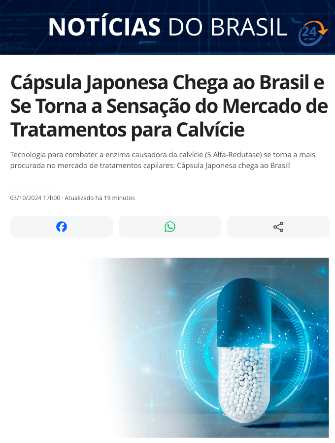 “Cápsula que bloqueia a enzima 5 alfa-redutase, promete revolucionar o combate à calvície, oferecendo resultados impressionantes sem a necessidade de cirurgias ou procedimentos invasivos,” afirma Yoshinori Ohsumi cientista responsável pela pesquisa.