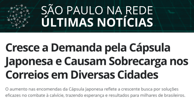 O aumento expressivo nas encomendas da Cápsula Japonesa, uma solução revolucionária no combate à calvície, tem gerado um impacto significativo nos serviços dos Correios em diversas cidades do Brasil. Dermatologistas e consumidores relatam resultados impressionantes, elevando a procura pelo produto, que promete bloquear a enzima 5 alfa-redutase, responsável pela queda de cabelo. A corrida por uma solução eficaz traz esperança para milhares de brasileiros que buscam recuperar a autoestima através de um tratamento simples e acessível.